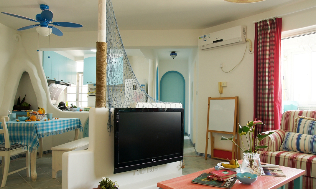 進入設計狀態時,我的想法總是很零碎, 我的首要任務是篩選出有價值的靈感碎片,拼成一幅美麗的藏寶圖, 盡量把設計過程變成簡單有趣的尋寶游戲,扮演好船長角色朝著珊瑚島的方向啟航。 航海途中捕獲的靈感碎片如下: (1)、魔幻,超現實主義。 (2)、小時候看過一本《神秘島》的連環畫。 (3)、潘多拉星球。夏天的尾巴。 (4)、小提琴家David Garrett艷驚四座的《Hes a Pirate》 (5)、讓廚柜的其中一節吊柜變成海浪(為什么廚柜一定就是直的?)。 (6)、格林童話的蠟燭吊燈。《愛麗絲夢游仙境》。 (7)、鬼才畫家享利.馬蒂斯。 (8)、沙發區域做成春暖花開的珊瑚島,面朝餐廳和廚房,連成一片大海。 (9)、讓電視墻變成一艘浮在客廳地面的帆船。 (10)、經常玩的埃及祖瑪游戲,畫面的顏色搭配非常華麗。 (11)、《盜夢空間》第三層夢境。 (12)、方文山的素顏韻腳詩。(寫和畫,同是筆下的智慧。文字可以玩成韻腳詩,為什么設計不能玩成航海詩?)