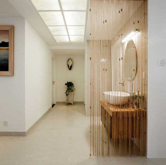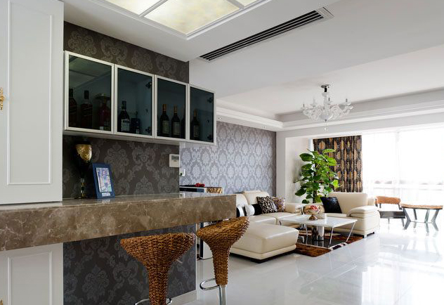 接觸本案業(yè)主蓮MM是通過(guò)原來(lái)客戶介紹認(rèn)識(shí)的,她家的設(shè)計(jì)很特殊,我接手下來(lái)的時(shí)候她都已經(jīng)準(zhǔn)備開(kāi)始做木作的。從和她的溝通中知道她偏喜歡的風(fēng)格趨向是現(xiàn)代簡(jiǎn)約,但是她已經(jīng)定好的家具確是比較中性的皮質(zhì)沙發(fā)和比較厚重的木制石材臺(tái)面的歐式餐桌,她個(gè)人是不太喜歡復(fù)雜并厚重的歐式風(fēng)格,所以在最后的風(fēng)格定位上確定了現(xiàn)代簡(jiǎn)歐的風(fēng)格去銜接不是很互搭的兩種家具。而對(duì)于原有的空間的規(guī)劃上也做了稍微的調(diào)整,在客廳和餐廳的過(guò)渡區(qū)域增添了吧臺(tái)的區(qū)域,既恰當(dāng)?shù)睦蒙峡臻g的基礎(chǔ)上又使空間顯得飽和。而吧臺(tái)的區(qū)域和鞋柜的區(qū)域也很完整的銜接在一起。而整體的色調(diào)上還是以白色為主,在軟裝的配飾上以灰色、咖啡色、褐色、土黃色去映襯,使得空間和諧統(tǒng)一。
