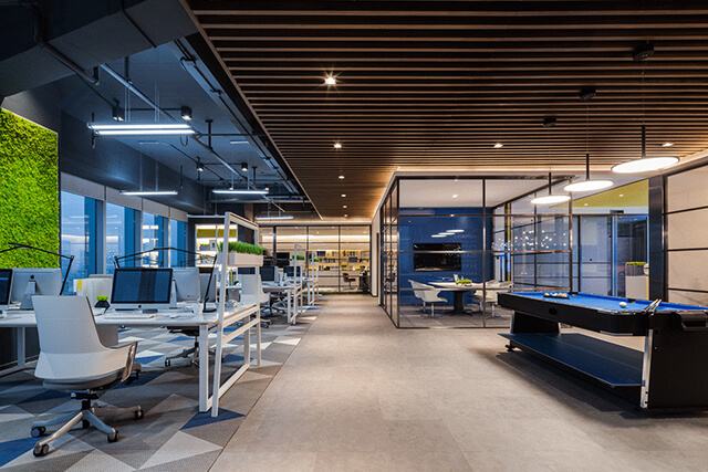 七、辦公室裝修的燈具不得靠近A級以下裝修材料,如果燈具高溫部位周邊有A級以下材料,需要進行隔熱或散熱處理,防止火災。辦公室裝修中使用的燈飾材料采用B1級或大于此級別的材料。