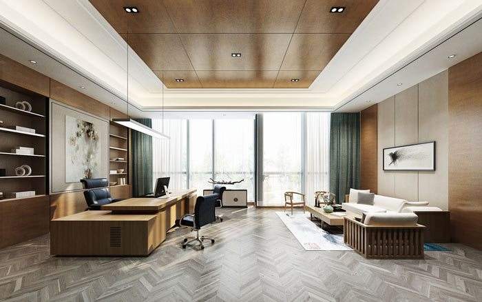 現代簡約風格強調室內空間的開放性,內部和外部的透明性,簡潔的線條和少量裝飾元素,這些都體現了簡約中的氛圍和風格。 同時,這種裝飾風格擺脫了空間圖形設計中承重墻的限制,強調了功能性設計,簡潔流暢的線條以及強烈的色彩對比。 這種小型辦公室的裝飾風格不僅可以達到擴大空間的效果,還可以達到高端氛圍。